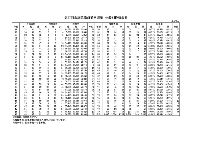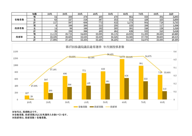 投票者数および投票率は次のとおりです。