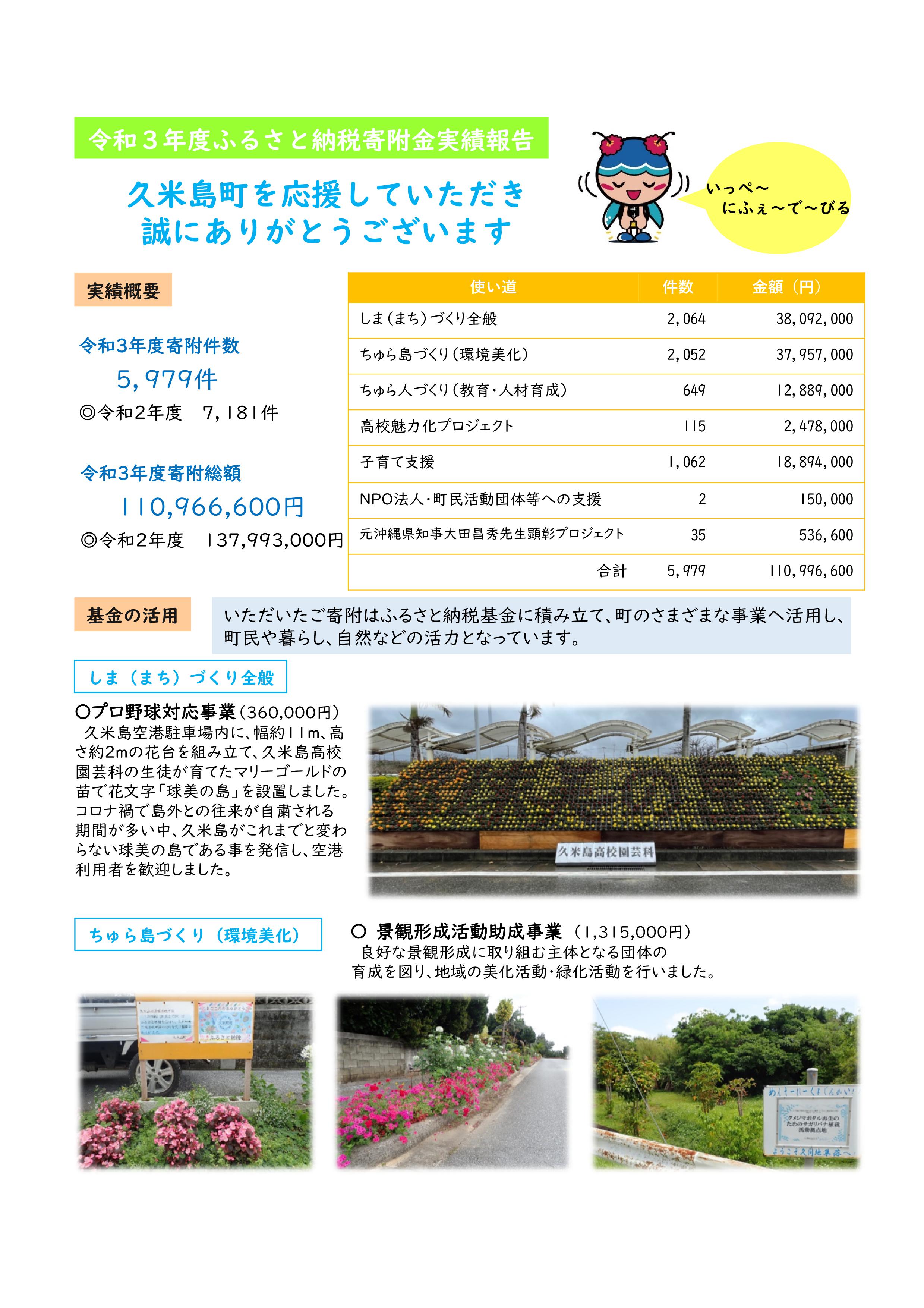 久米島町へたくさんの想いを寄せていただき、誠にありがとうございます。