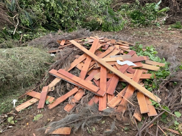 草木ヤード内(廃木材、タイヤ、鉄くずなど)
