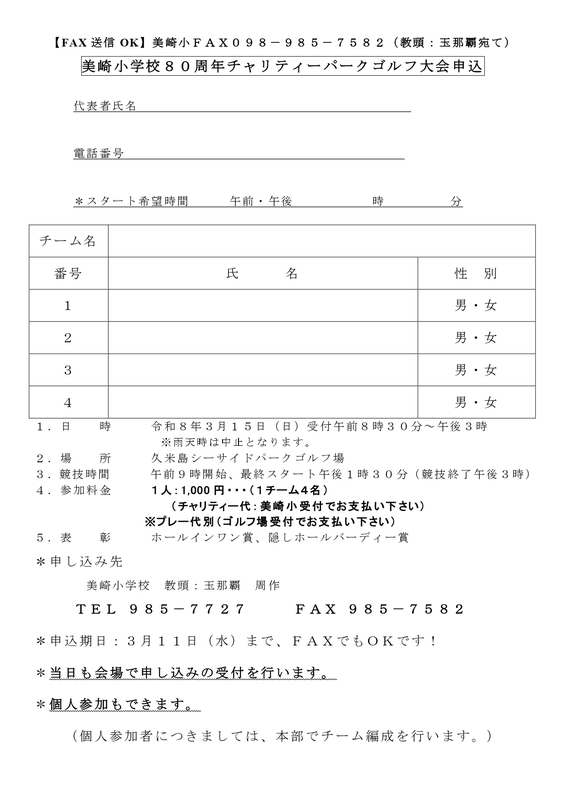 プレー代及び道具レンタル代はゴルフ場受付でお支払いください。 - 申込書類 美崎小学校チャリティーパークゴルフ案内 [PDF:274KB]