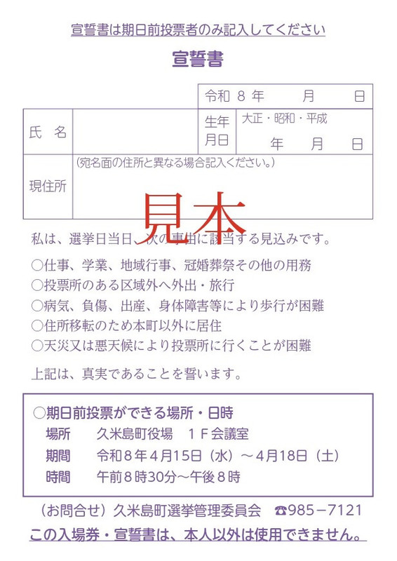 次回の選挙から「投票所入場券(ハガキ)」の裏面に「期日前投票宣誓書」が印字されます。