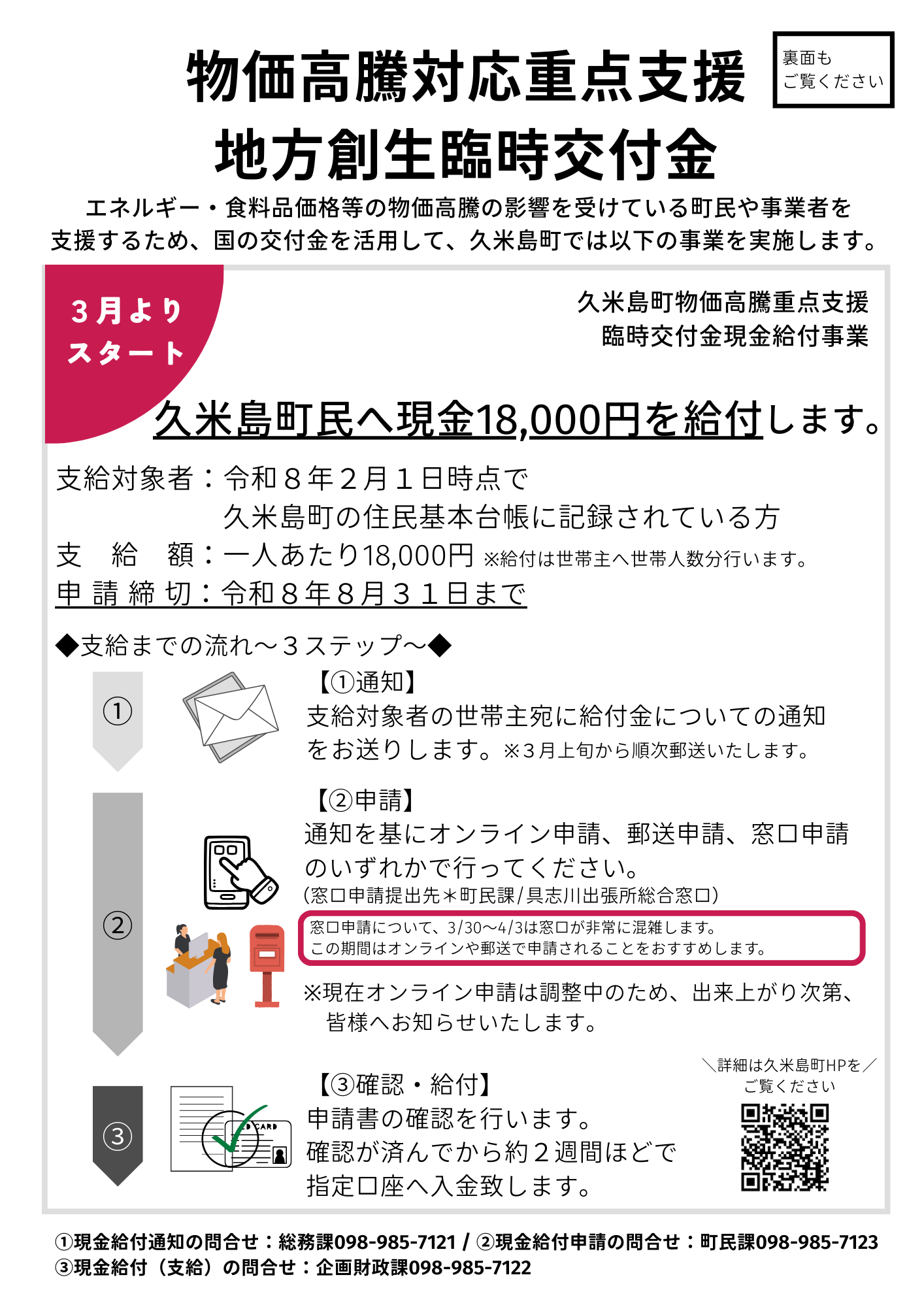 久米島町物価高騰重点支援臨時交付金現金給付事業