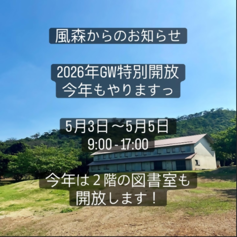 【今年もやります!】 ゴールデンウイークの5月3日~5日に、風の帰る森交流施設を特別開放します。