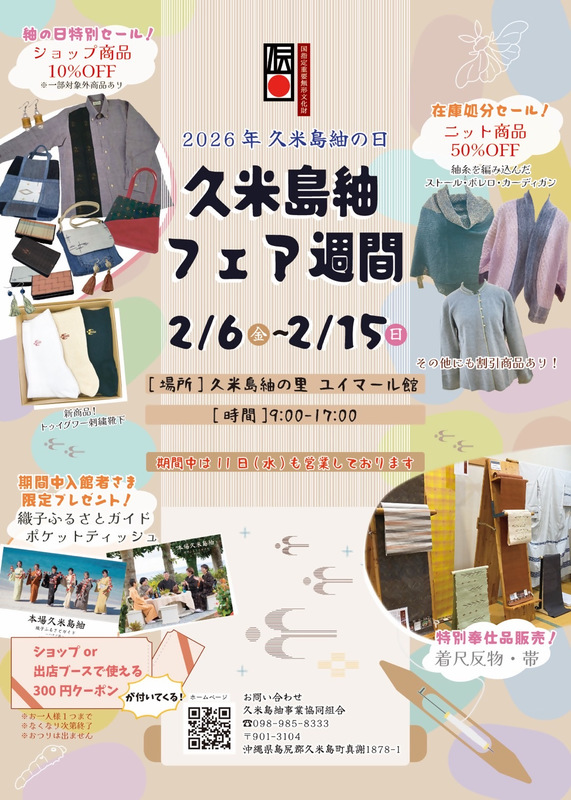 久米島紬事業協同組合では、毎年2月6日の「久米島紬の日」に合わせてフェアーを開催しています!