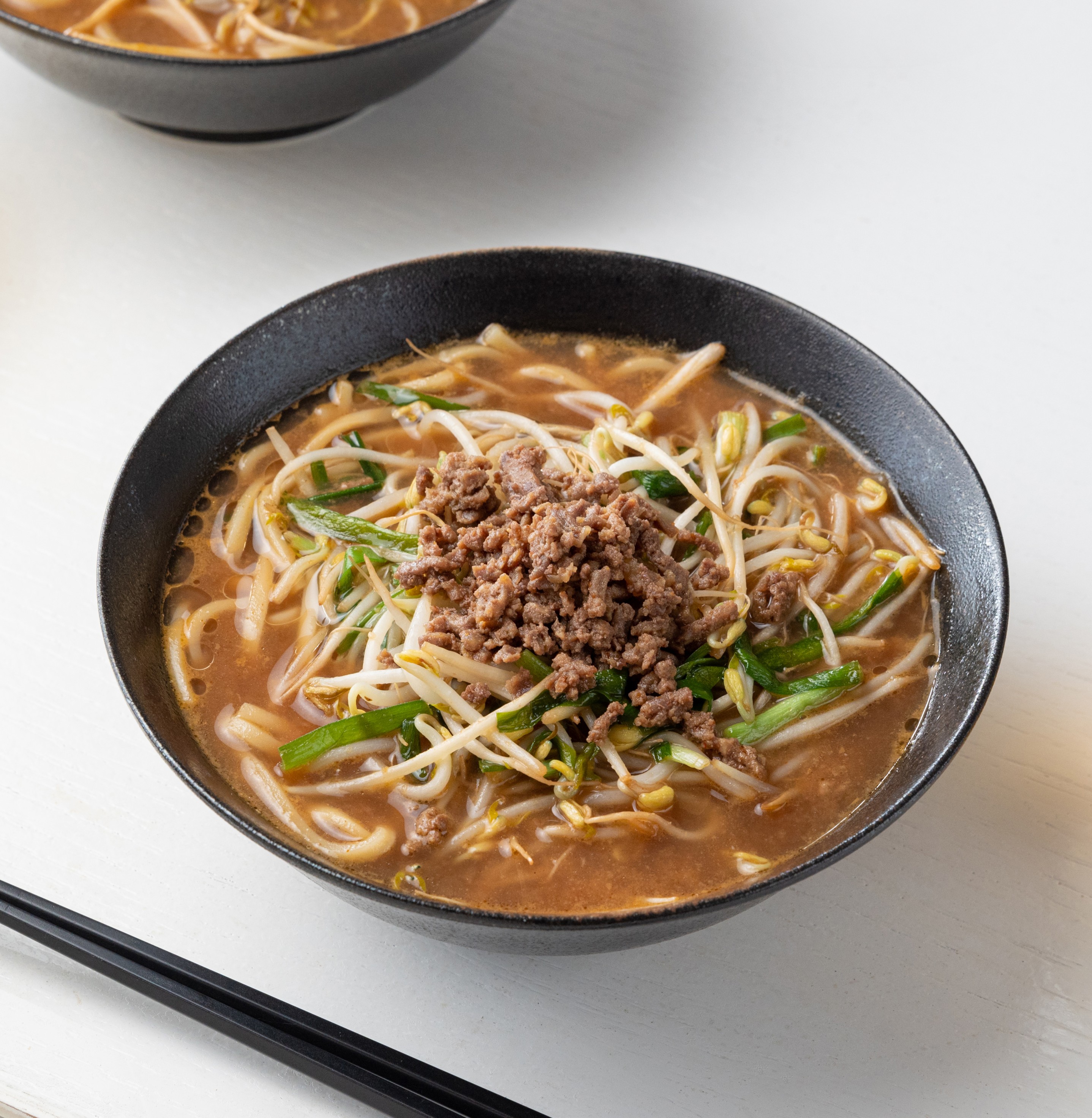 久米島経産牛の骨をじっくり煮込んで旨みを凝縮し、久米島味噌でしっかり味付けしたこってりながらもすっきりとした牛骨そば。ピリ辛に炒めたニラもやし牛ひき肉がさらに食欲をそそります!